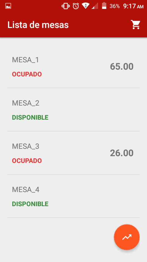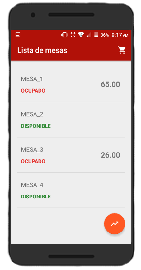 De manera rapida y sencilla visualize las mesas disponibles para sus clientes para tomar la orden en segundos y sin esperas. Además puede ver el consumo actual de las mesas ocupadas.
