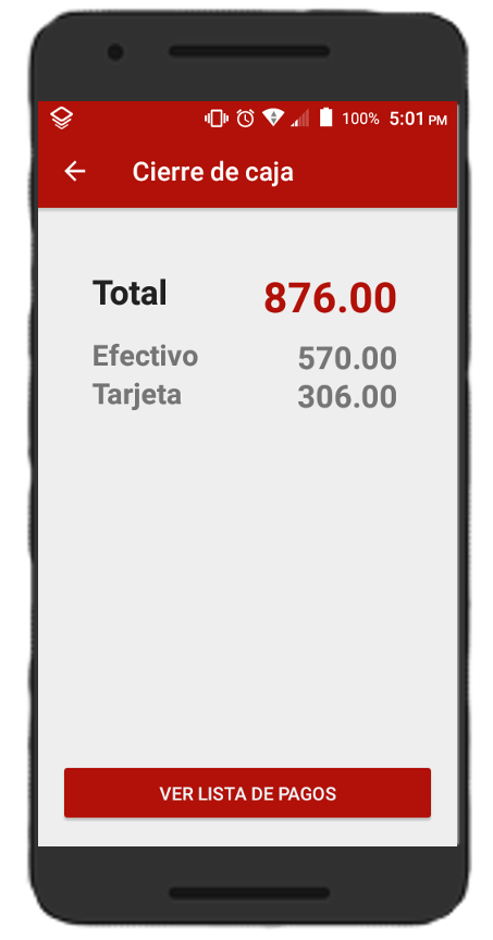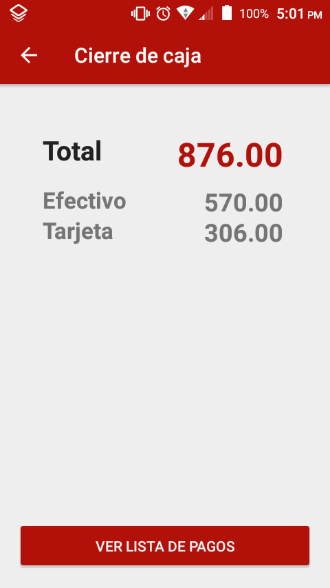 Podrá ver el estado actual de caja, separando las venta pagada con efectivo y tarjeta.